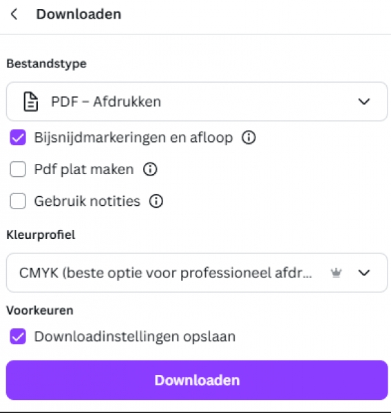 maar ... hoe moet je een drukklaar bestand downloaden in Canva?